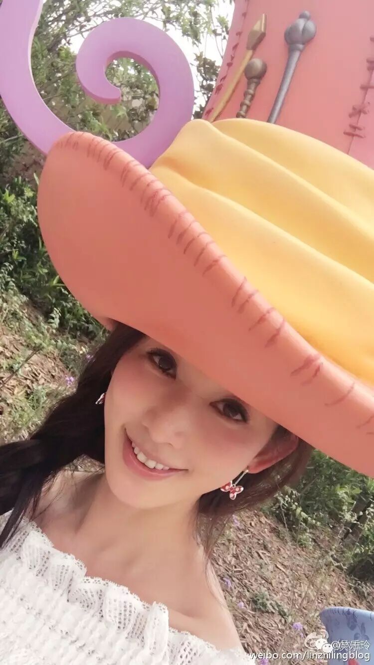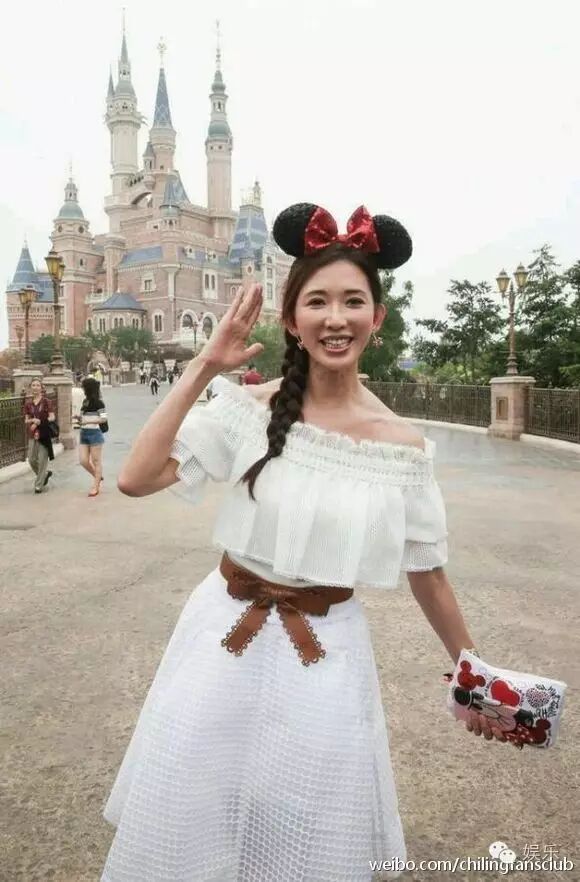 林志玲在迪士尼园区自拍。