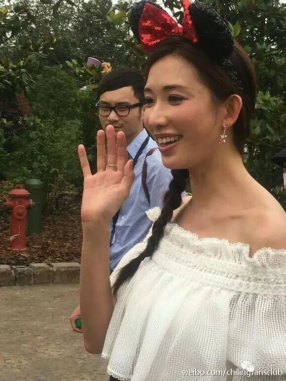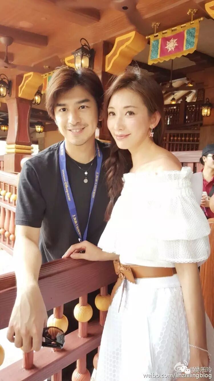 林志玲和男神陈柏霖在迪士尼园区。