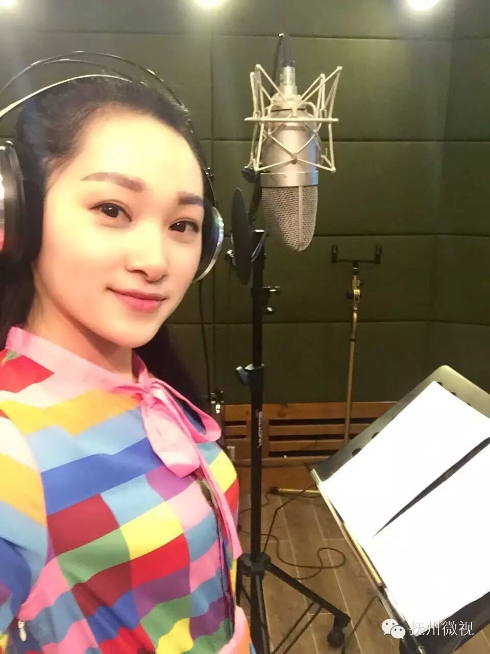 抚州方言发言人王娜在录音棚录制节目主题曲