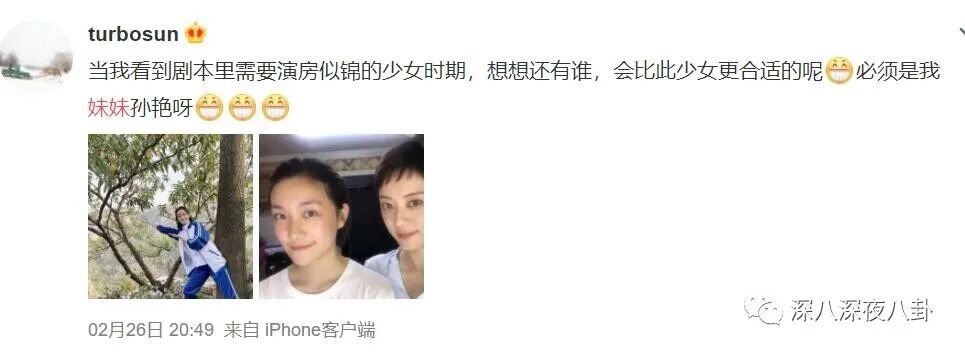 孙俪昨晚还发微博晒了自己跟妹妹的合影。
