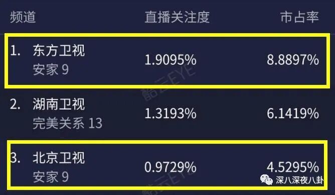 你们看看这牛逼的收视率,双台播出,一个第一,一个第三。