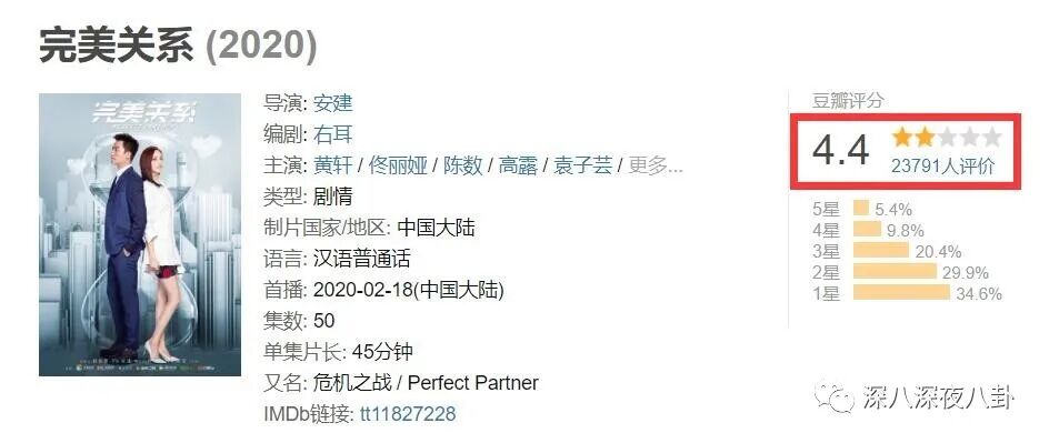 贺繁星翻篇后,到了黄轩跟佟丽娅陈数的《完美关系》,看阵容感觉蛮靠谱,可真正看下去,才知道有多糟……豆瓣4.4分,评1星跟2星的已经过半,惨不忍睹……所以黄轩这些年为什么一直在扶贫……