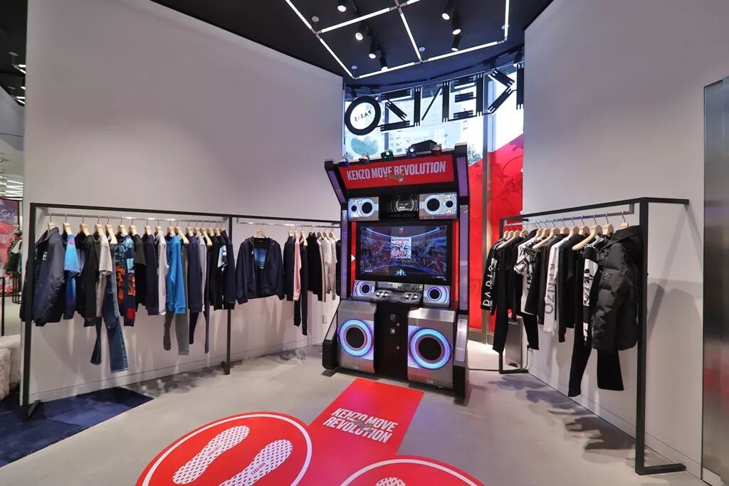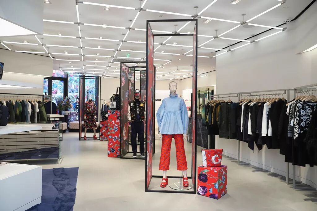 KENZO店内聚集了这么多的明星,那肯定是相当有看点:内部点缀着天然海蓝宝大理石家具、不锈钢家具、人造毛皮的几何感沙发,中央由正方型组成的电视墙则第一时间演绎KENZO每季视觉主题,更是为时尚电影提供额外的数字展示空间~