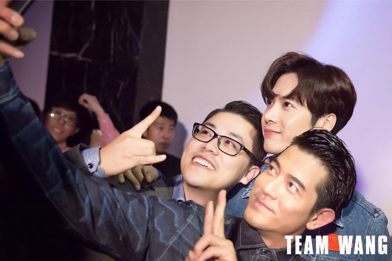 开幕式结束后,王嘉尔参加了品牌的庆祝派对,不仅和自己的偶像郭富城相聊甚欢,还遇到一起玩耍的小伙伴合影留念。