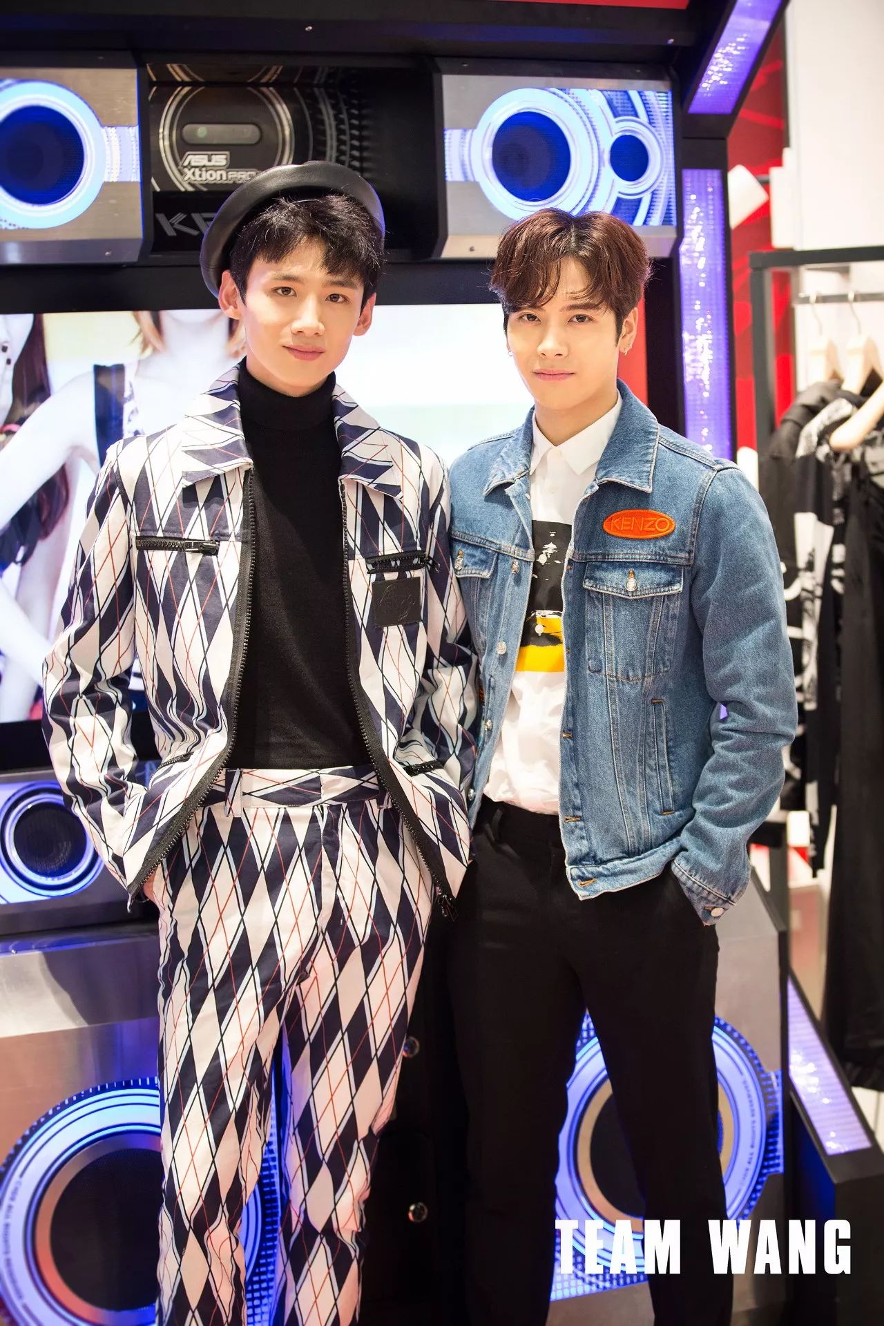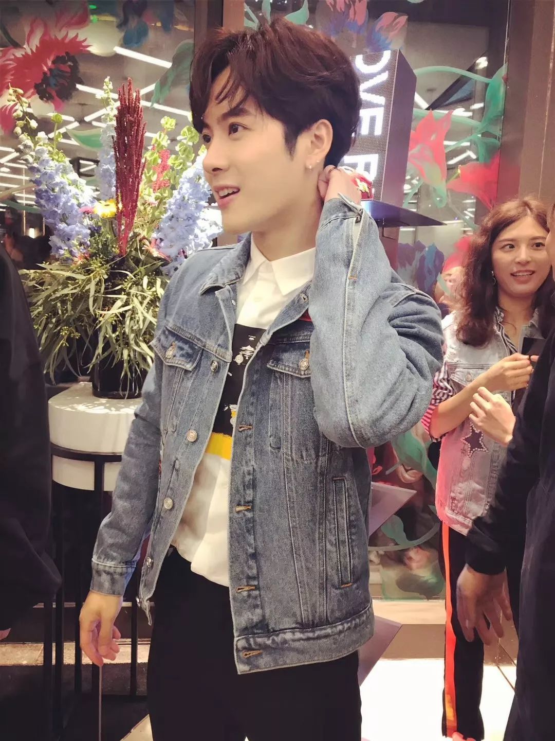 粉丝们都知道王嘉尔很喜欢黑色的衣服,但是这次木有穿黑色的他是不是让你很惊喜?!耿直的他还透露本来是全黑的饿,但是想尝试更多的颜色,就选择了这身KENZO印花牛仔外套,内搭泼墨涂鸦衬衫,搭配得简单却帅气十足。而好兄弟白敬亭也做了一次新尝试,为了配合有活力的KENZO,也穿了一件花色稍多的外套~
