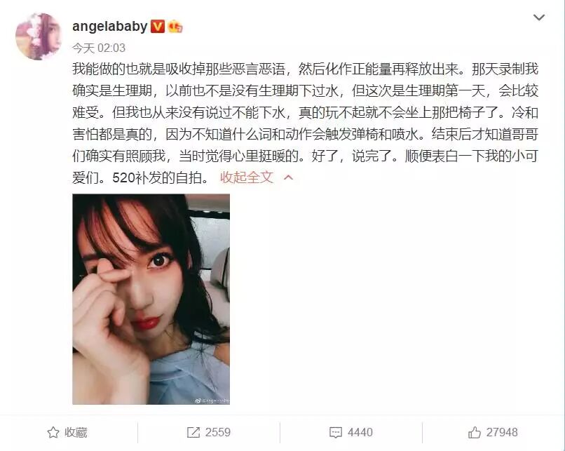 最后,有的网友甚至还质疑baby说自己是生理期,有没有证据,谁知道你是不是生理期呢?关于这个嘛,要怎么拿证据呢,对吧