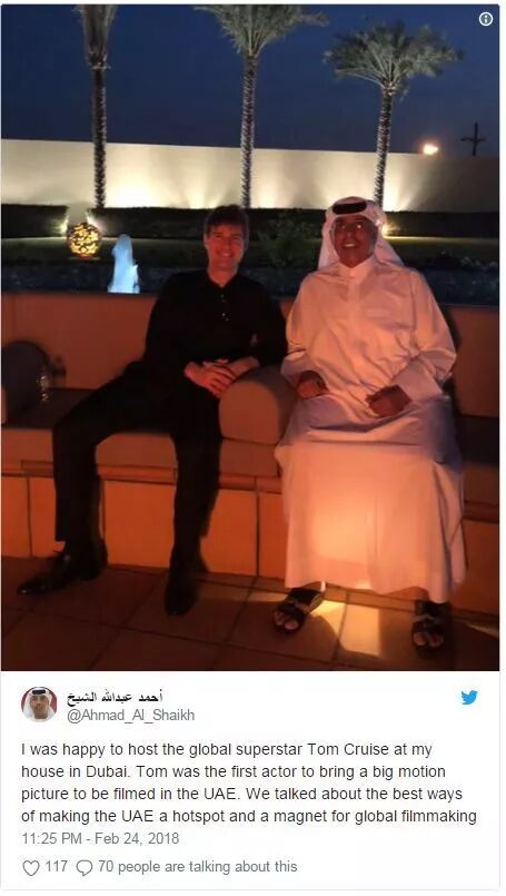 当然,我们不追星,但是汤姆克鲁斯来迪拜啦!关键是你知道他来干嘛的么?他跟迪拜政府的媒体主任聊了聊怎么让迪拜成为最佳电影取景地,好大的话题哦...