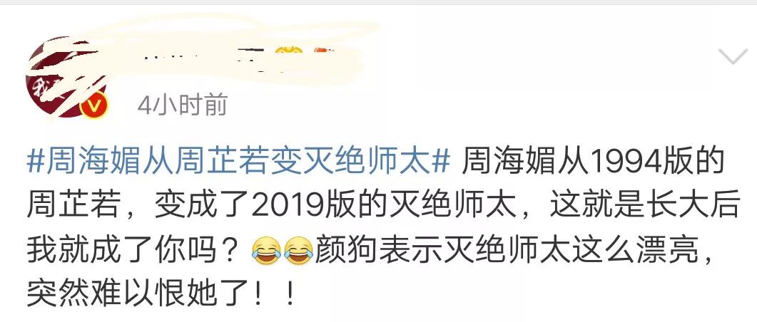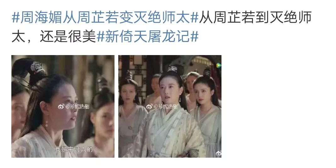 而且不用装嫩角色需要扮演灭绝师太的周海媚,反而获得大家的认可,哎,还是颜值即正义。