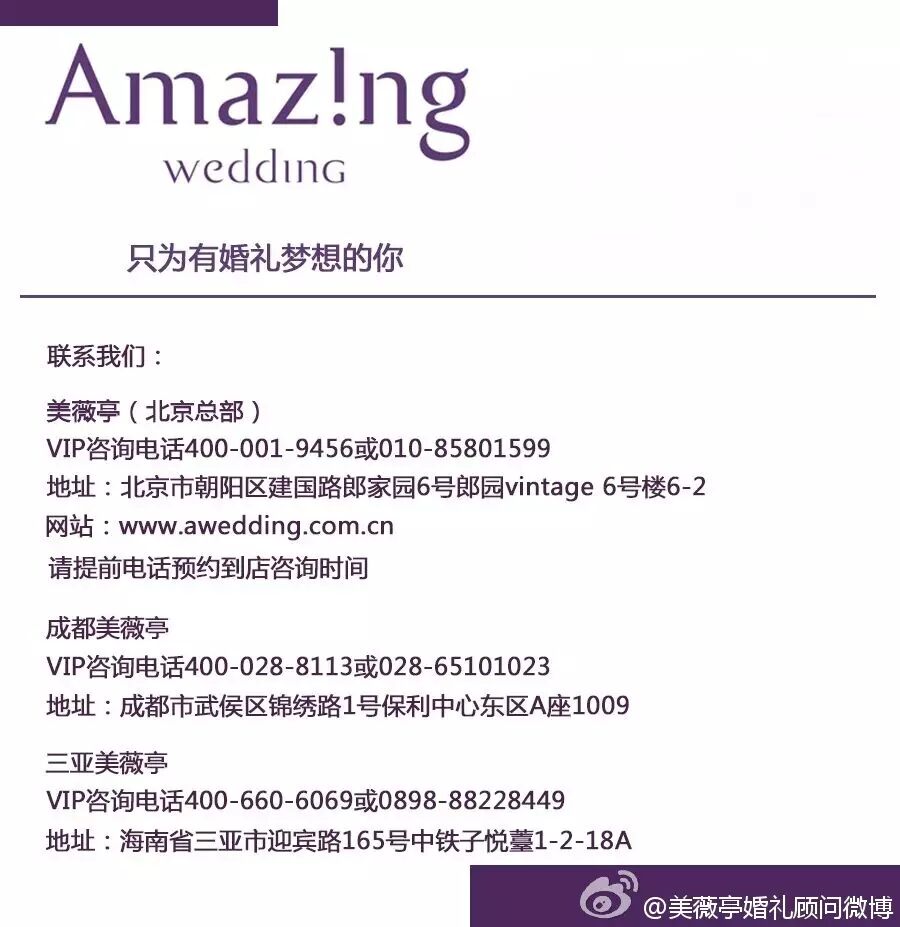 不管是明星的婚礼,还是普通人的婚礼,美薇亭都会用同样的标准来提供最专业的服务。我们用匠心的态度、用完美主义的苛刻、用全力以赴的决心坚守着我们的婚礼梦。同样的,我们也期待着同有婚礼梦想的你。