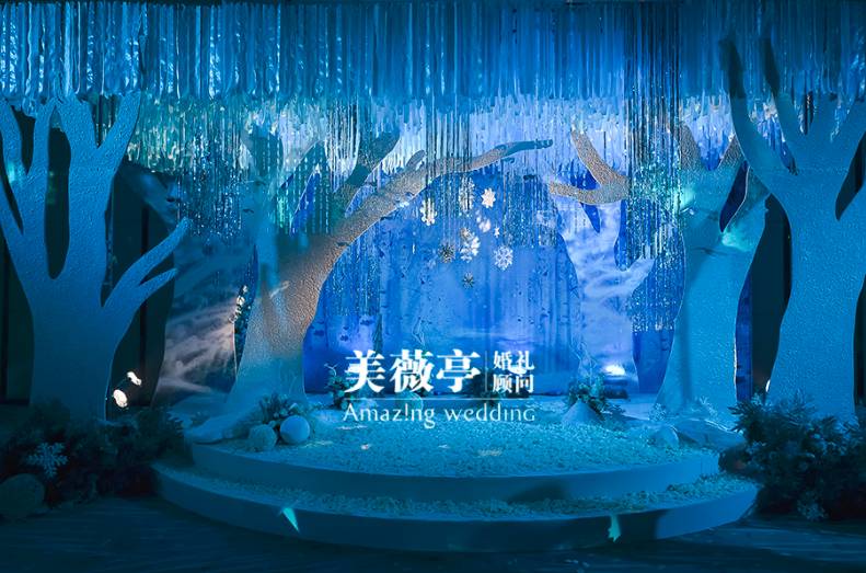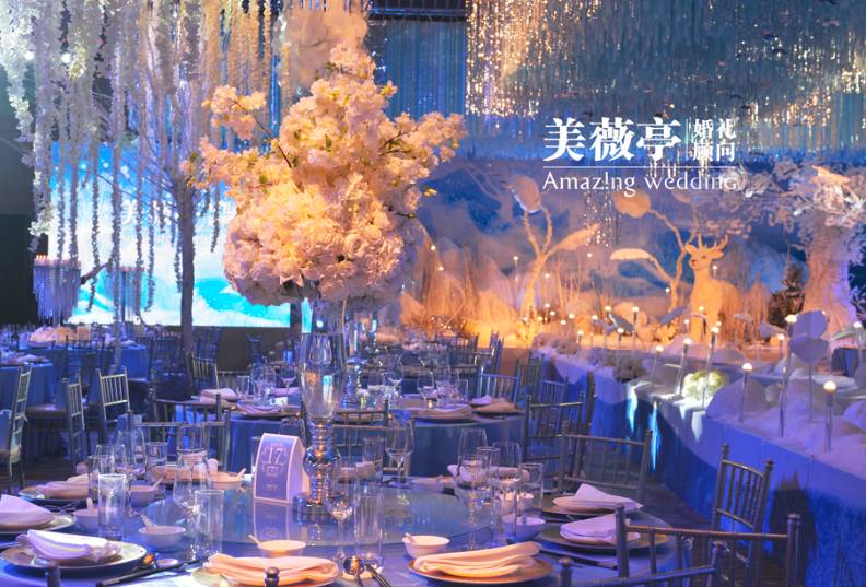 2015年9月10日,印小天先生与哈琳娜小姐在“精灵之树”下,许下了一生的诺言。上万朵鲜花绽放,十万条丝带装点,银鹿、雪鸟、精灵之树、圣洁之花,美薇亭为印小天先生打造了这样一场充满魔幻色彩的冰雪王国,这是一个来自梦境的辗转,也是我们送给他们最棒的礼物。