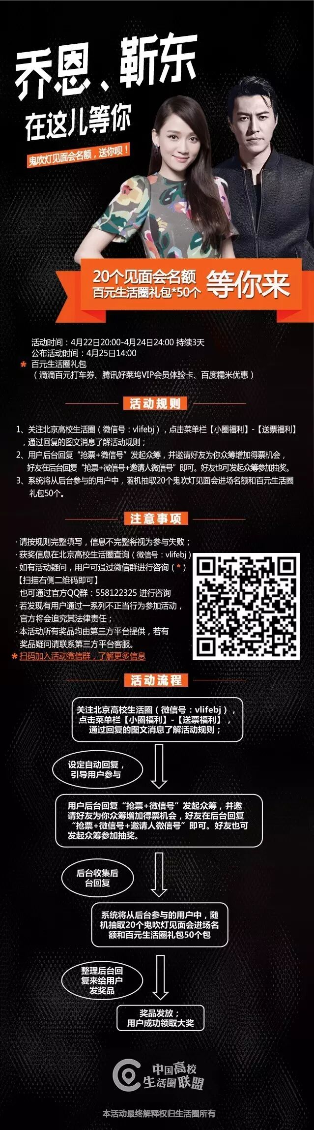 老干部靳东和教主陈乔恩见面会就这么猝不及防的杀来!“如果说我不在意,那也只是一出戏”,伙伴们,呐喊起来吧,不用为门票发愁,让我们替你解决这“一票难于上青天”!