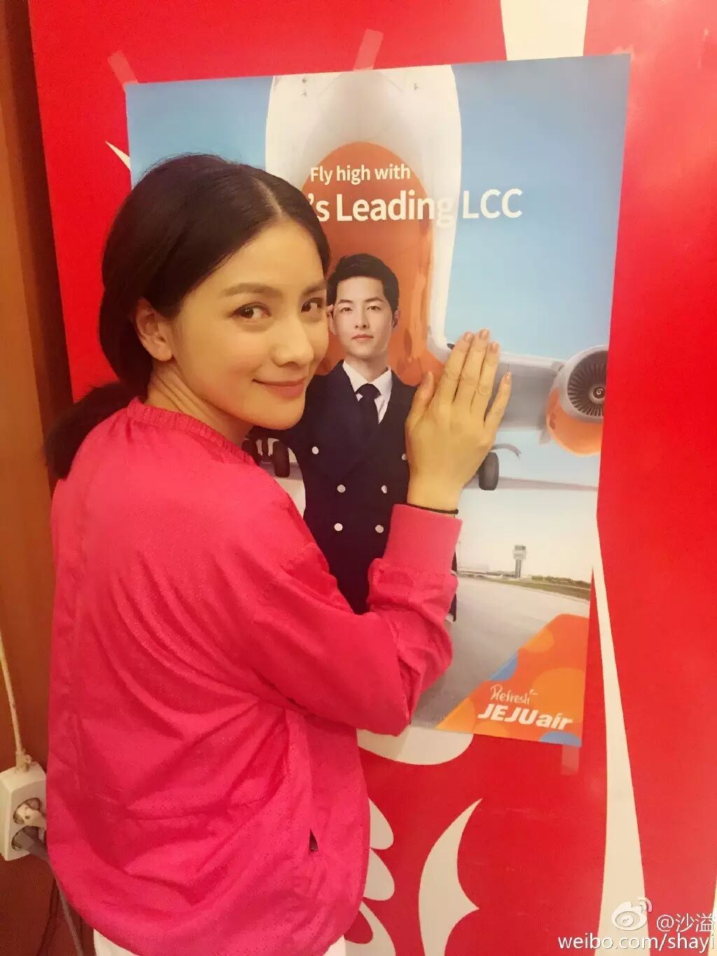 秀恩爱的新技能你们get✔到了么?这比背影牵手照好玩多了……当然啦,胡可也是一个对颜值有要求的人!看见仲基欧巴的时候也hold不住。