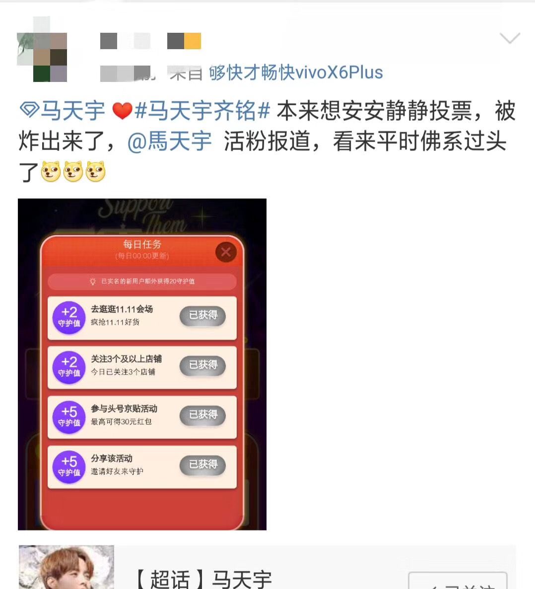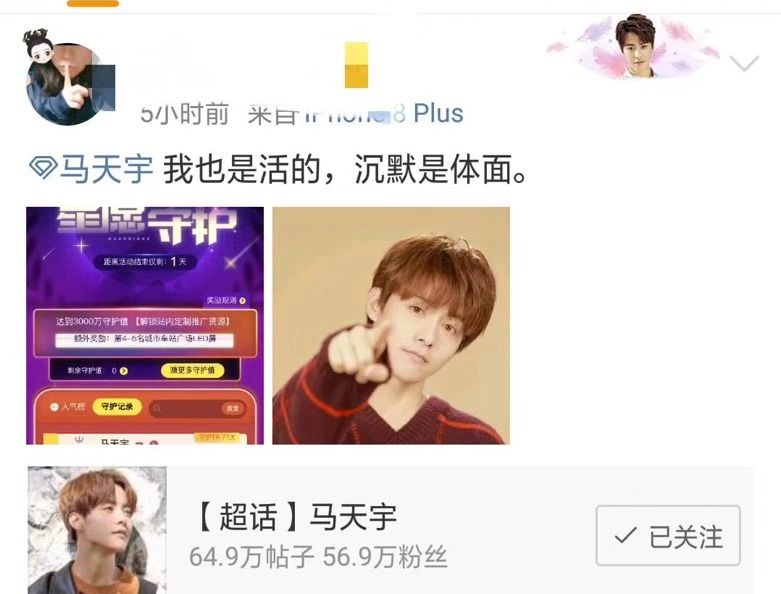 马天宇的粉丝如何证明自己是活粉? Ray马尔泰弱智 内地男星 2018-10-30 21:00:18 836 创作不易,用心坚持,欢迎请BaGua喝几杯爱心咖啡!打赏并支持本文 打赏并删除本文 过够了佛系粉丝生活,这一次马天宇的粉丝竟然集体“复活”!!为何羽毛们力证自己是活粉呢?看来是有大事发生:京东星愿守护来了!打榜方式:下载京东app→点右下角“我的”→点击“为爱豆而战”→点马天宇守护→做任【明天10.31 晚8点结束 】 后面快追上来了!马天宇的活粉们冲呀!点击阅读原文进入打榜页面 创作不易,用心坚持,欢迎请BaGua喝几杯爱心咖啡!打赏并支持本文 打赏并删除本文 感谢您的支持鼓励,我会继续努力的!文章地址:用户邮箱:打赏金额:USDT 请输入数字点击”去打赏“,即可进行打赏支持本文章哦 马天宇 About the Author Ray马尔泰弱智 功能介绍:马天宇:1986年7月12日出生于山东省德州市,歌手、演员。这里分享马天宇最新资讯,好玩有趣,正能量!感谢羽毛的关注! Related Posts 马天宇微博更新三人舞,有人跳么? 2019-03-15 21:11:13 马天宇微博更新:快看凉生下线啦! 2018-11-23 21:07:38 马天宇 | 我们心疼的凉生啊,再见了. 2018-11-19 21:49:41 马天宇王子的相遇: 当凉生遇到樱空释,很有画面感! 2018-11-01 21:00:31 马天宇的粉丝如何证明自己是活粉? 2018-10-30 21:00:18 发表评论