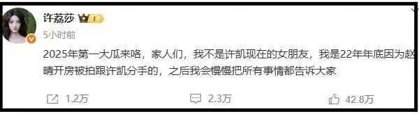 这话一出,许荔莎直接发微博长文回应许凯出轨的来龙去脉。