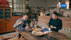 后来,二人在"旧物仓"感受特色的"古早时光",潘玮柏还当着谢大厨的面点了外卖,吃货本性实锤无遗了。