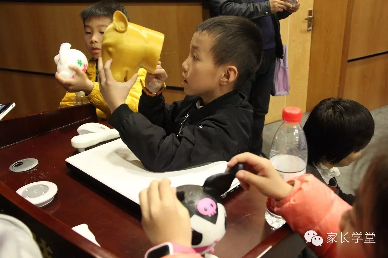 3D打印技术理解起来并不复杂,可塑性材料通过电流热效应加热软化,再用压力挤出,层层堆叠、冷却成型。事实上,在姚老师还未揭晓3D打印原理的奥妙之处前,已经有小记者猜到了。可见,孩子们虽然对这项新技术接触时间不长,但接受速度快得出人意料。