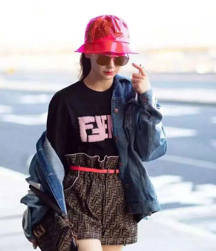 再比如荧光粉的小帽子,经典的牛仔装扮遇到这顶粉粉的小帽子,其实看起来还可以,但如果没搭配好,这顶帽子就会弥漫出一缕塑料味儿了。