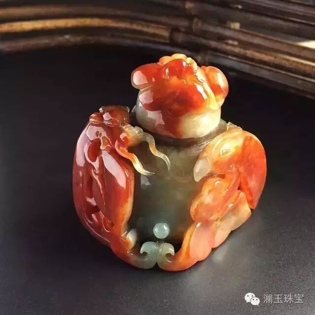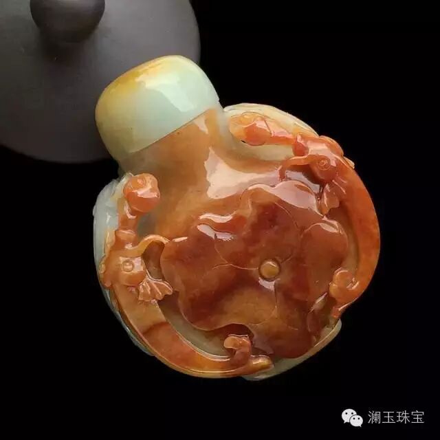 糯冰种红黄翡鼻烟壶