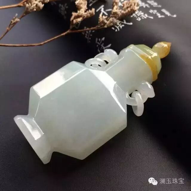 冰种飘花略带淡黄翡鼻烟壶