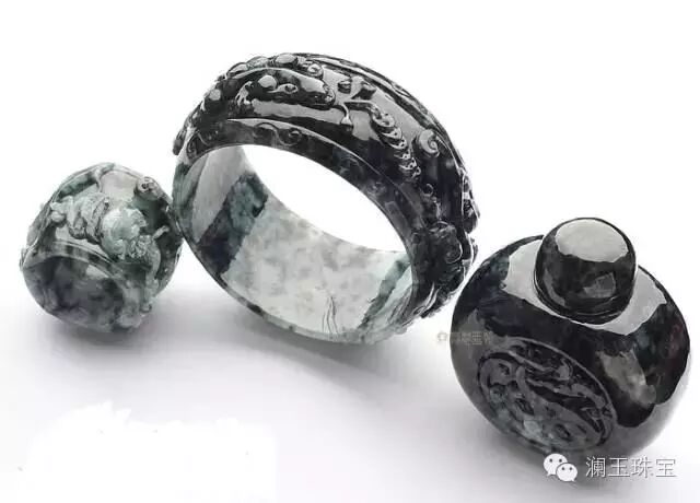 糯冰种飘墨花雕花手镯/扳指/鼻烟壶(一批走)