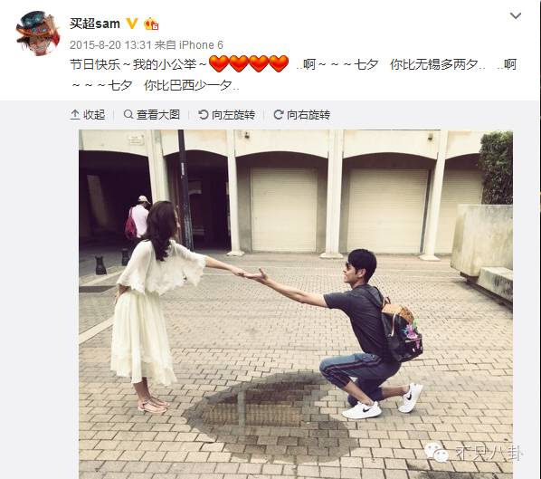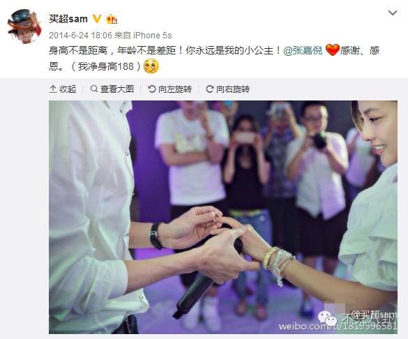 然后买超就坐不住了,说我丑可以不能说我媳妇矮!他还特意在微博上澄清不是张嘉倪矮,是自己太高了,所以说怪他怪他。