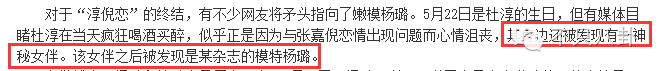 后来新闻又曝出,张嘉倪和杜淳的分手,是因为杜淳劈腿了瑞丽模特杨璐……
