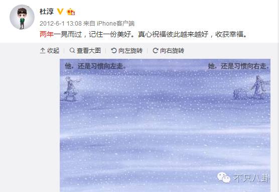2012年6月1号儿童节,就当大家都默认他俩在一起还甜蜜恩爱的时候,杜淳发了一条意味深长的微博。