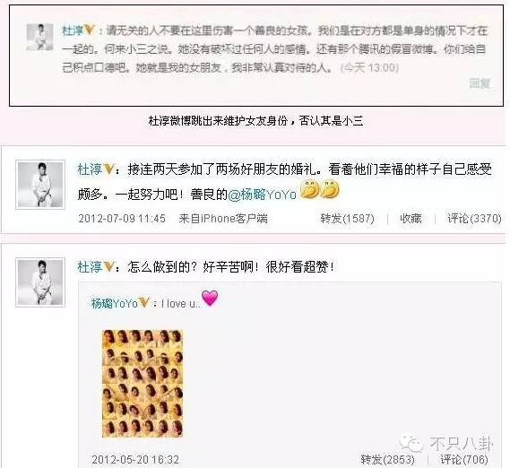 杜淳后来还出来维护女朋友,说她不是小三,我们是各自单身才在一起的呢~