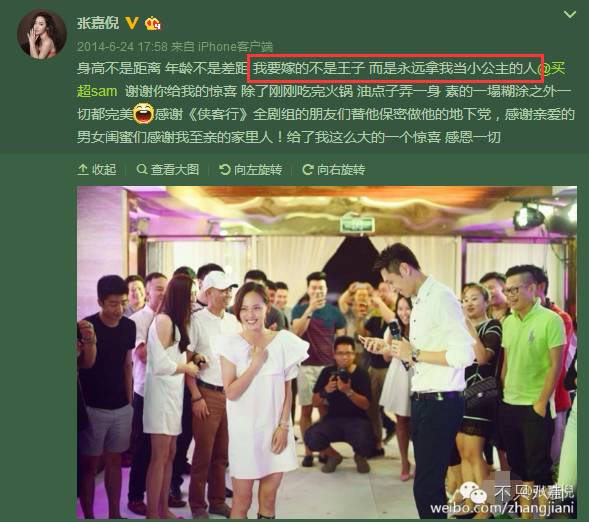 张嘉倪还特别甜蜜的说,我要嫁的不是王子,而是把我当小公主的人~