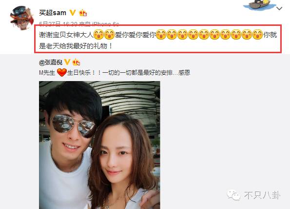 事实证明,后来买超真的一直拿张嘉倪当小公主一样宠着,微博上每一条几乎都关于她,简直就是个炫妻狂魔。