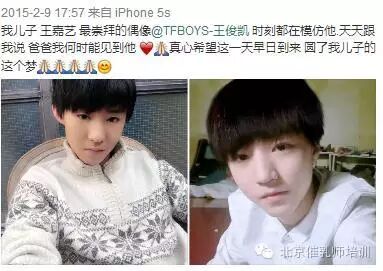 而且这位少年的偶像就是TFBOYS王俊凯,王小虎曾经在微博上说,儿子时刻都在模仿王俊凯,天天问什么时候能见到王俊凯。
