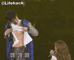 不看不知道,一看吓一跳,Ella直接蹲了下来仰望光良的腹肌,观众们的尖叫声此起彼伏!
