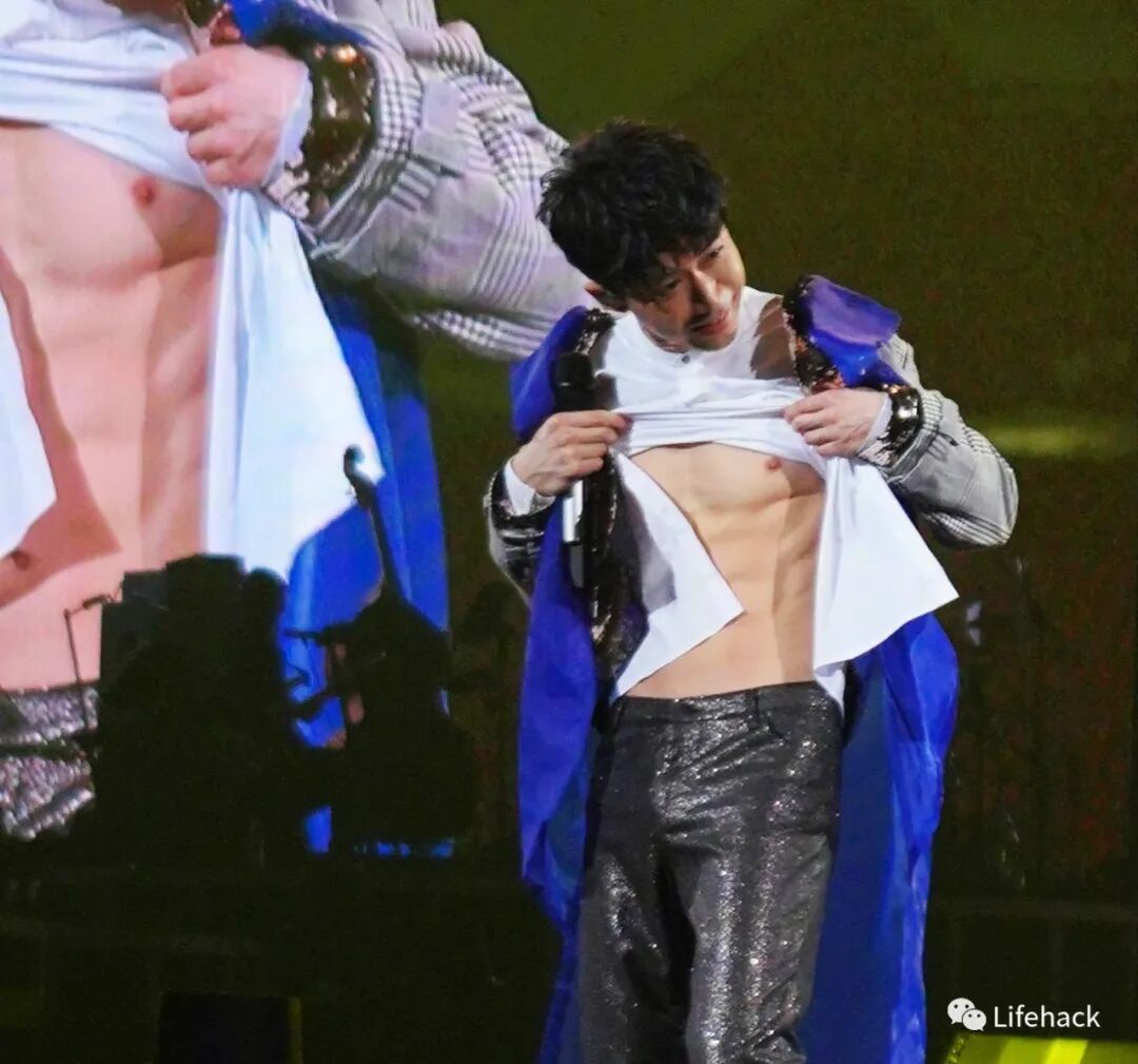 如果说上面那张身材照腹肌不明显的话,那昨天光良在现场撩起衣服,腹肌的变化肉眼可见,比两个月前清晰了很多!