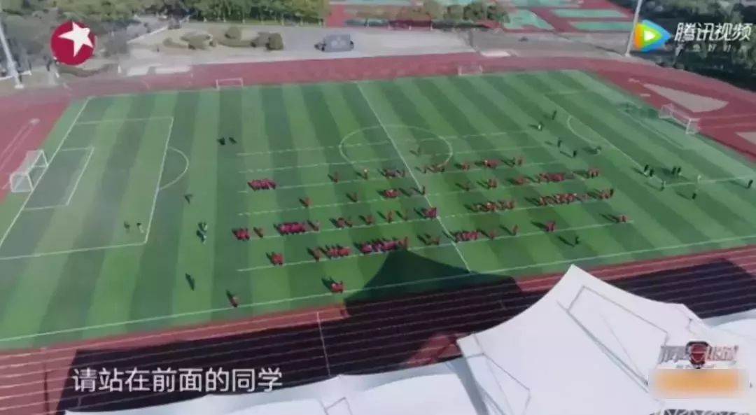 节目组安排崇明中学的高三考生站在足球场的同一条起跑线上,由黄渤等六个人分别提一个问题。