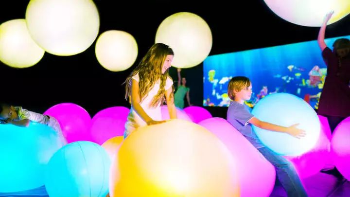 从表面上看,动力博物馆的最新展览看起来就像是将跳房子,乐高积木或素描板等熟悉的校园游戏进行Y世代的重新设计。但是,数字灯光投影和响应式艺术品,例如巨大的灯光音乐球房,实际上是一个多彩的画布。