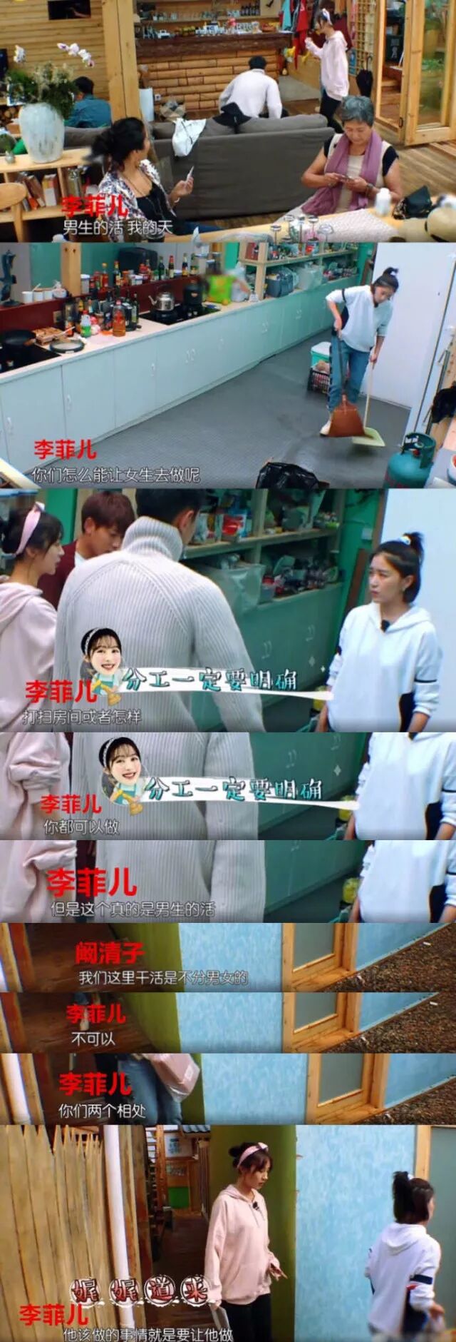 最近李菲儿上了芒果台综艺《亲爱的客栈》,节目里厨房漏水,阚清子准备处理,而陈翔和男友纪凌尘都在躺着不做事。