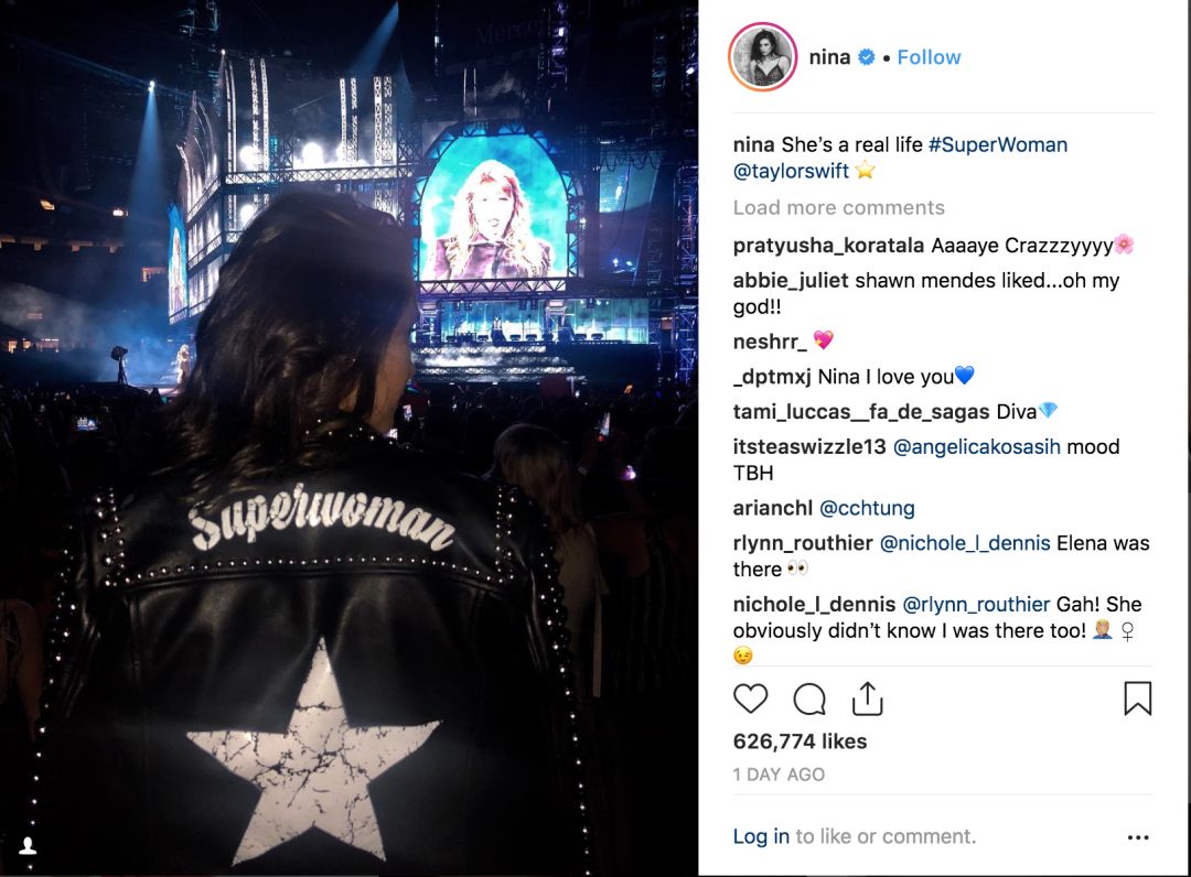 对于看了Taylor的演唱会,Nina的配文是: