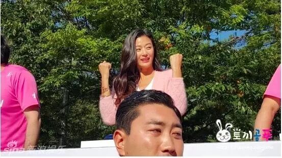 10月9日,全智贤现身首尔汝矣岛公园举行的“粉红丝带爱心马拉松”,为参与韩国乳癌慈善基金主办慈善马拉松的健儿打气,穿上粉红色外套衬白色上衣的全智贤,向到场的参赛者甜笑挥手打招呼外,更举起双手,握拳做出加油的手势,活力十足。