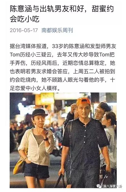 两人也曾经以结婚为前提交往了好几年,最后以陈意涵莫名其妙甩掉男方为结局,好在男方也找到了新的幸福