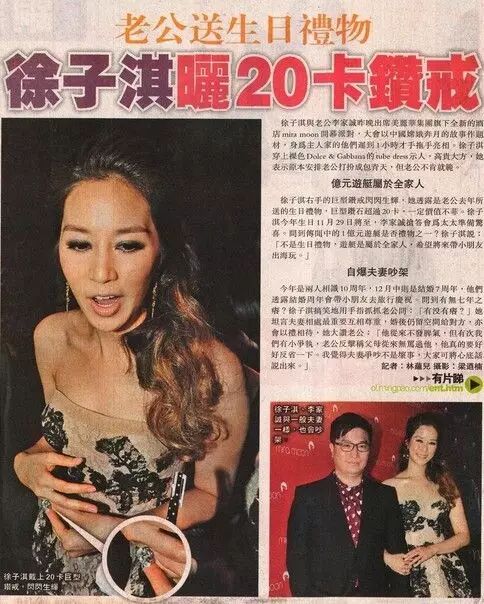 徐子淇生完儿子后,随之而来的就是她的生日,她自曝生日时老公送了20克拉的大钻戒给她!