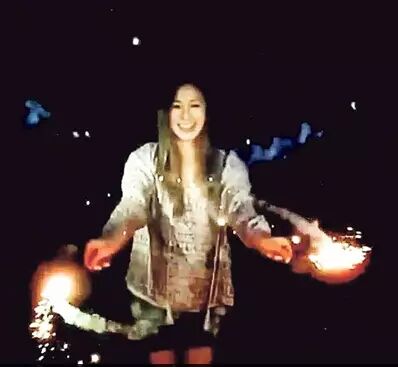 和老公甜蜜烧烤,玩烟花