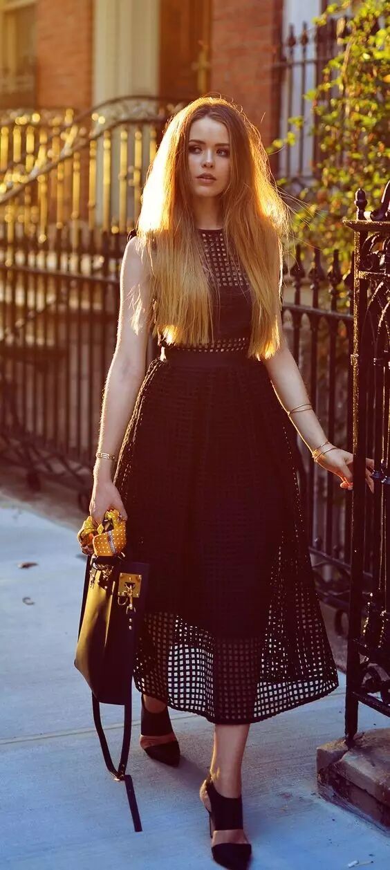 无袖黑色打底裙加皮夹克可以有效的隐藏你的拜拜肉~让你看起来瘦好多!因为穿上皮衣比你肉肉的手臂可显瘦多了!