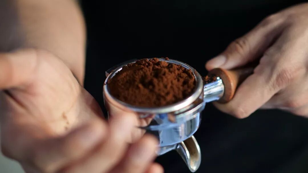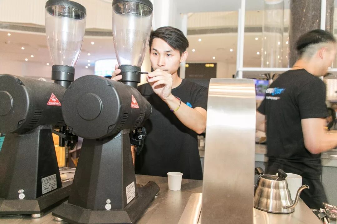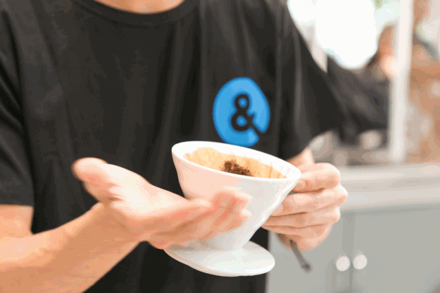 当中还会拍一拍杯中的咖啡,调整咖啡的密度。
