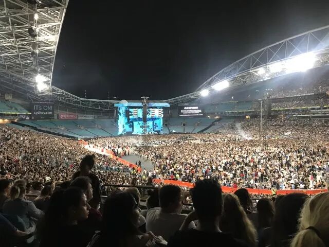 翘首企盼将近一年,终于等到2018.3.16这天的到来了!!可能土澳人民平时娱乐活动实在有限,所以每次大咖演唱会简直是举州欢庆的阵势——政府和交通部门全力协助,为四面八方赶来的歌迷提供免费火车和公交,两三分钟一个班次,高效快速疏散人流。满心期待的我特意带着长焦单反前往悉尼奥林匹克公园,内心小九九盘算着拍一些高清照片发在张笑笑公众号上分享给你们,没成想因为镜头太长被安检扣下了。。。