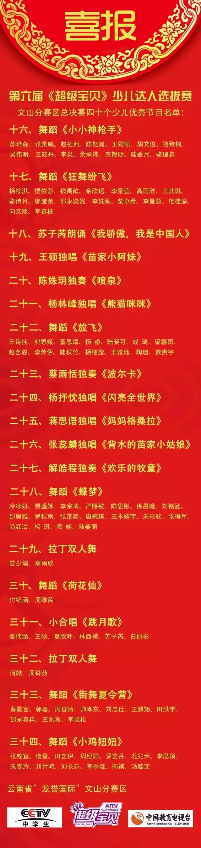 文山分赛区总决赛四十个少儿优秀节目名单公布