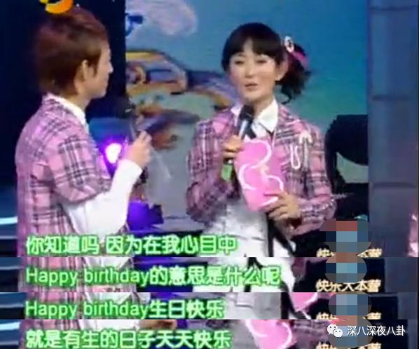 08年跨年晚会,在李湘喊出一句“happy new year”后,谢娜脱口一句“happy birthday”