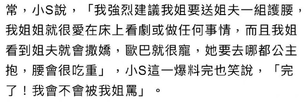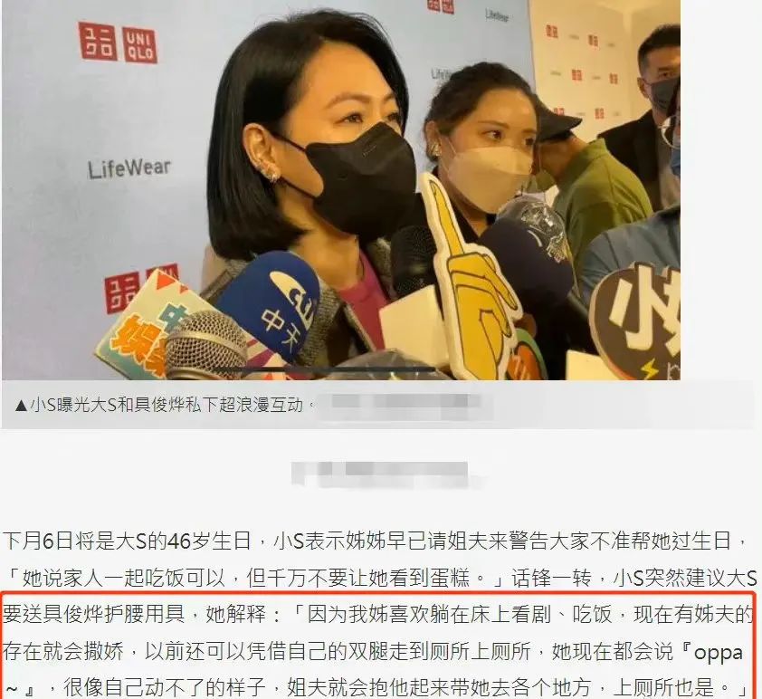 直言大S喜欢床上追剧或做其他事情,如果有其他需求就向具俊晔撒娇,想去哪里就让对方抱到哪里。
