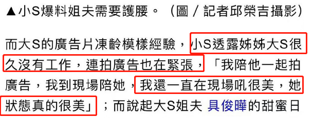 她在媒体采访中先透露大S因长期不工作导致拍广告有点紧张。