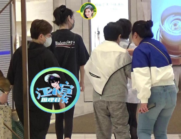 二人先在商场等人,随后一起进去溜达,最后又一起乘车离开。
