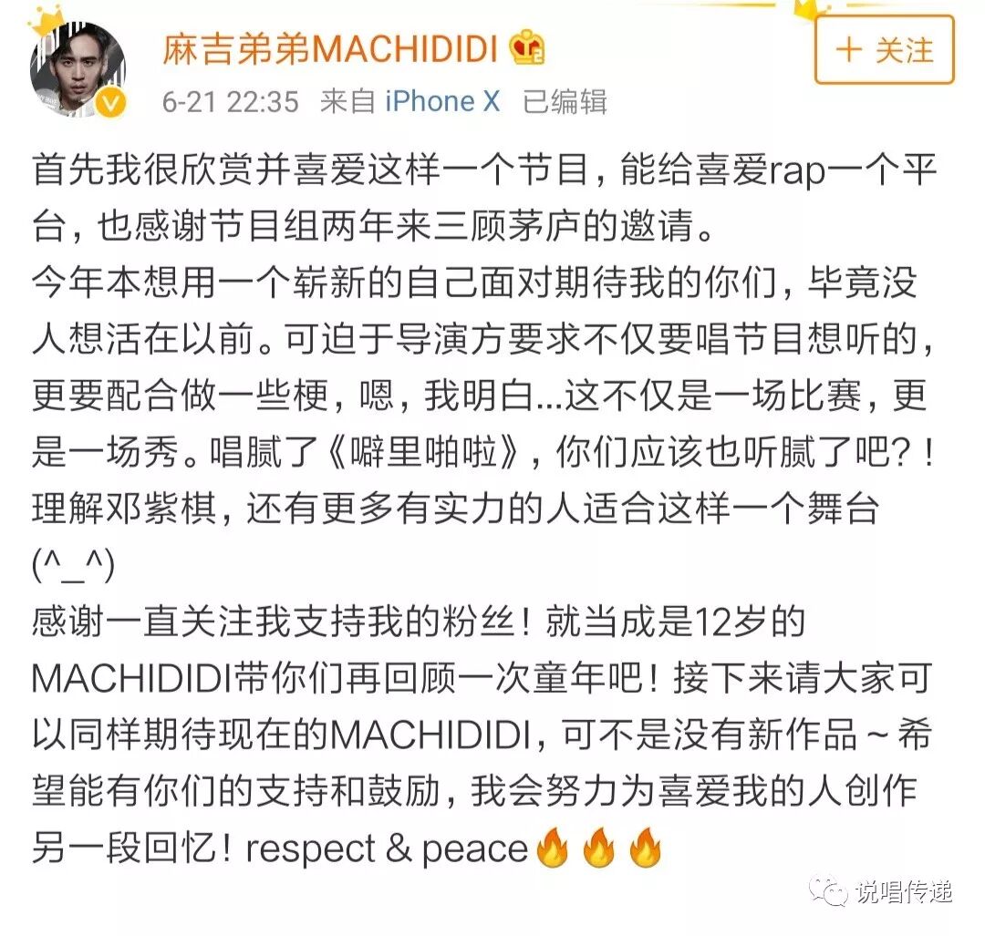 但节目播出当晚麻吉弟弟在微博说明之所以唱这首歌完全是按节目组的要求来。